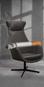 Eine brennende Zigarette fällt auf die Sitzfläche.
